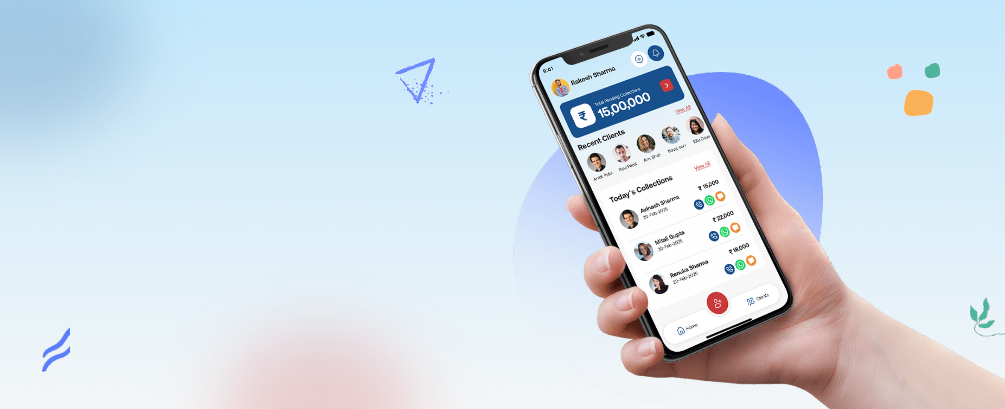 Reach out to your clients directly through WhatsApp, SMS, or phone call – all integrated within the app.